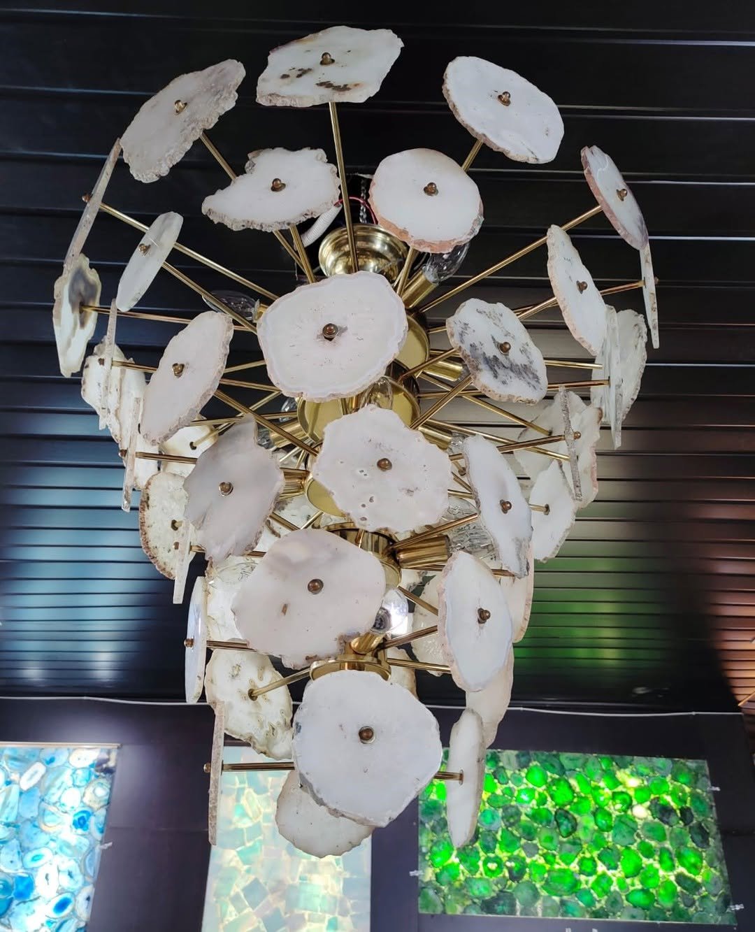 CRSYATL CHANDELIER is a piece adorned with exquisite stones creating a mesmerizing glow. Blending luxury with natural beauty, it adds elegance and sophistication to any interior space.