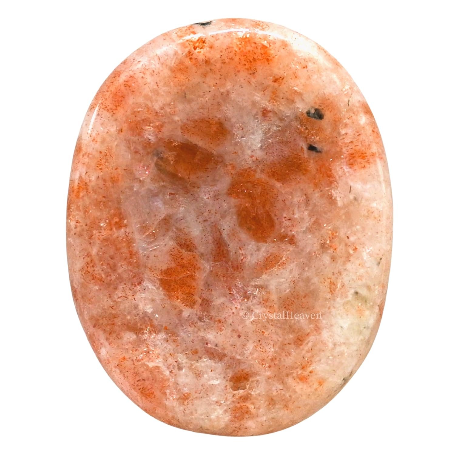 - This 2-inch sunstone palm stone, showcasing a warm and sparkling surface filled with shimmering inclusions reminiscent of sunlight. Ideal for meditation and healing practices, it exudes powerful energy and calming vibes.