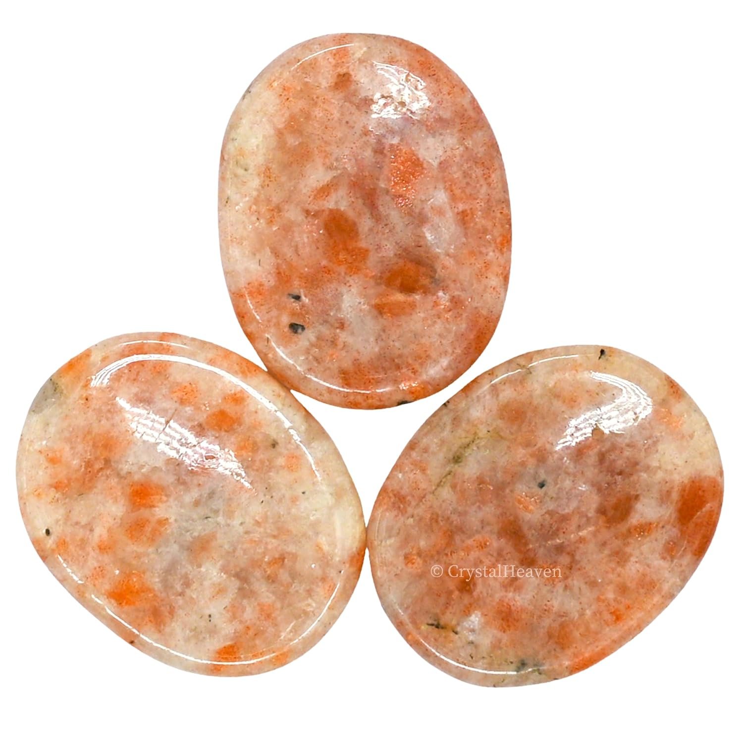 Certified Natural Sunstone Palm Stone for Relaxation for Anxiety Stress, Crystal Healing & Yoga Meditation, Spiritual Awakening, Feng Shui- AAA Grade 3 Pc set